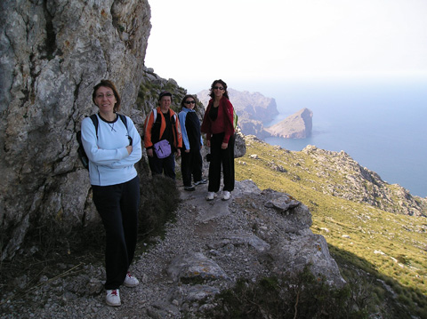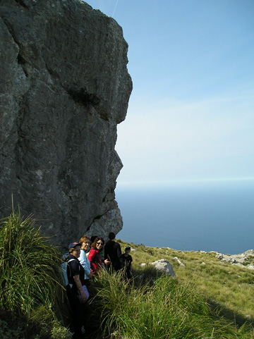 Al fondo el Morro de Bordils, con una caída vertical de alrededor de 200 m. Encima de este peñasco se encuentra la torre de Lluc, una torre de vigilancia.