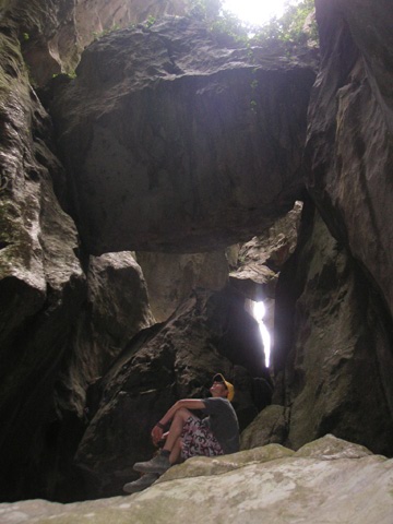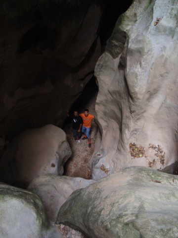 A medida que nos introducimos en sa Fosca va aumentando la dificultad por lo que cada uno llega hasta donde puede. Pedro descendiendo un tramo peligroso.