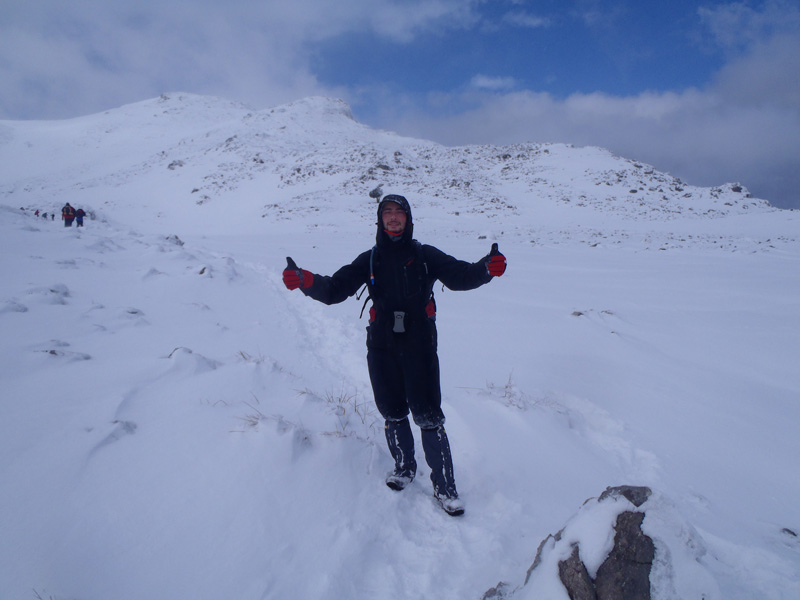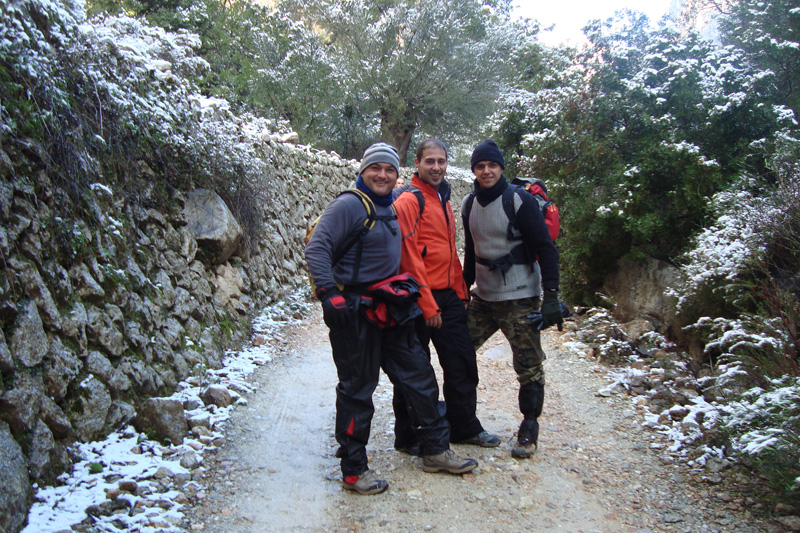 Iniciamos la subida al Massanella con la nieve pisada y resvaladiza.