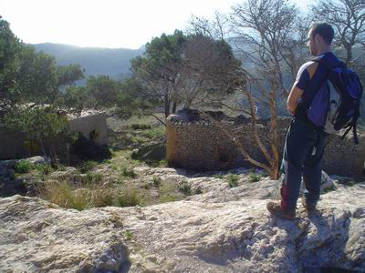 De la Cueva subimos al camino para luego coger el desvío hacia el coll de ses fontanellas desde donde subimos directamente otra vez a la Atalaya por la arista, este último tramo está fitado. De la Atalaya vuelta al punto de partida en la ermita de la victoria. |
