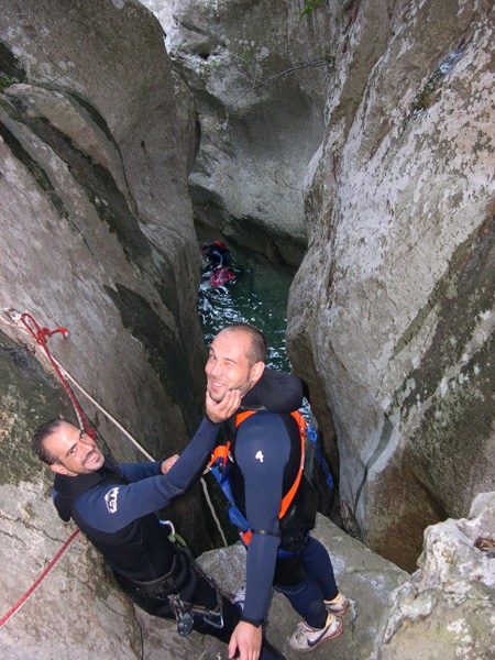 Después de la pequeña caminata y de merendar nos ponemos manos a la obra para empezar el torrente. Empezamos sobre las 11h y acabamos a las 18:30h en el coche.